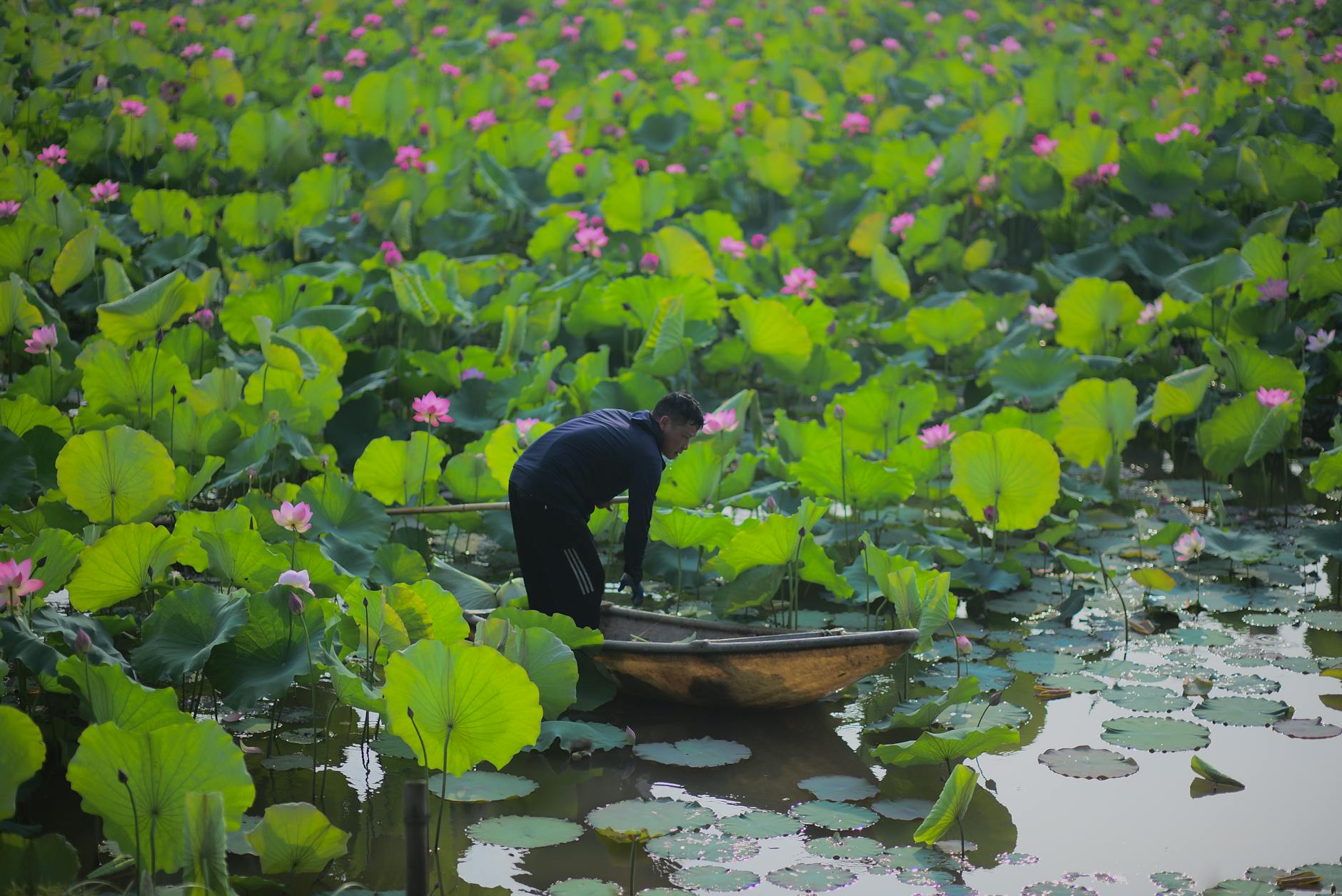 Třeboňský lodník ukazující první kapří roje