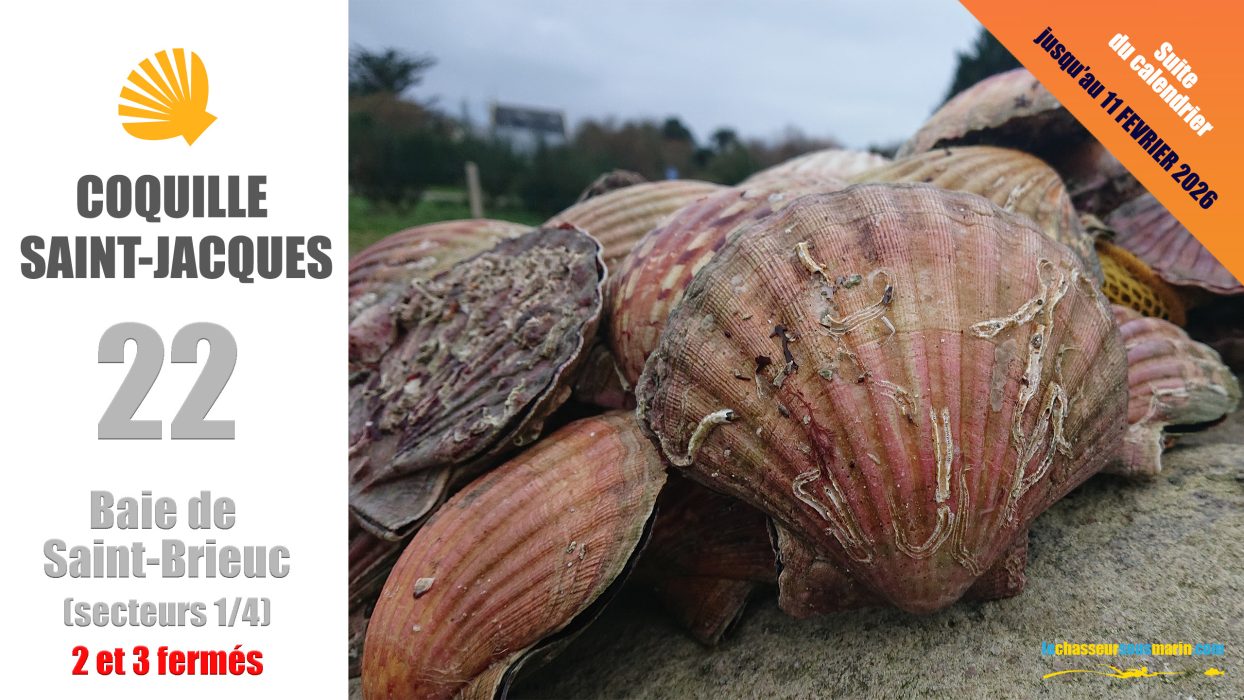 La suite du calendrier de pêche à la coquille Saint‑Jacques pour la baie de Saint‑Brieuc couvre la période du 2 au 11 février 2026. Les jours et horaires de pêche ont été publiés pour les deux prochaines semaines et restent consultables en ligne. Cette publication précise les secteurs ouverts et fermés ainsi que les règles applicables aux pratiquants de loisir.